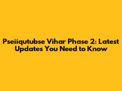 Pseiiqutubse Vihar Phase 2: Latest Updates You Need To Know